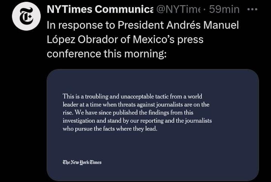 ¿Qué dirá mañana el presidente tras la publicación de la investigación? Por ahora, al periódico de Estados Unidos no le agradó del todo las palabras de López Obrador: