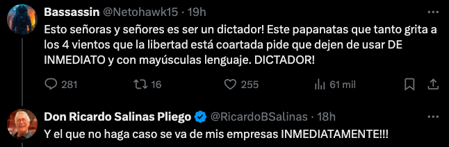 Ya se va viendo la influencia de Javier Milei en Ricardo Salinas Pliego…. Bueno, no es que el dueño de TV Azteca anteriormente se haya mostrado muy en favor del “lenguaje woke” (que es como él llama al lenguaje inclusivo)… pero de eso a prohibirlo, pues ya es otra cosa.