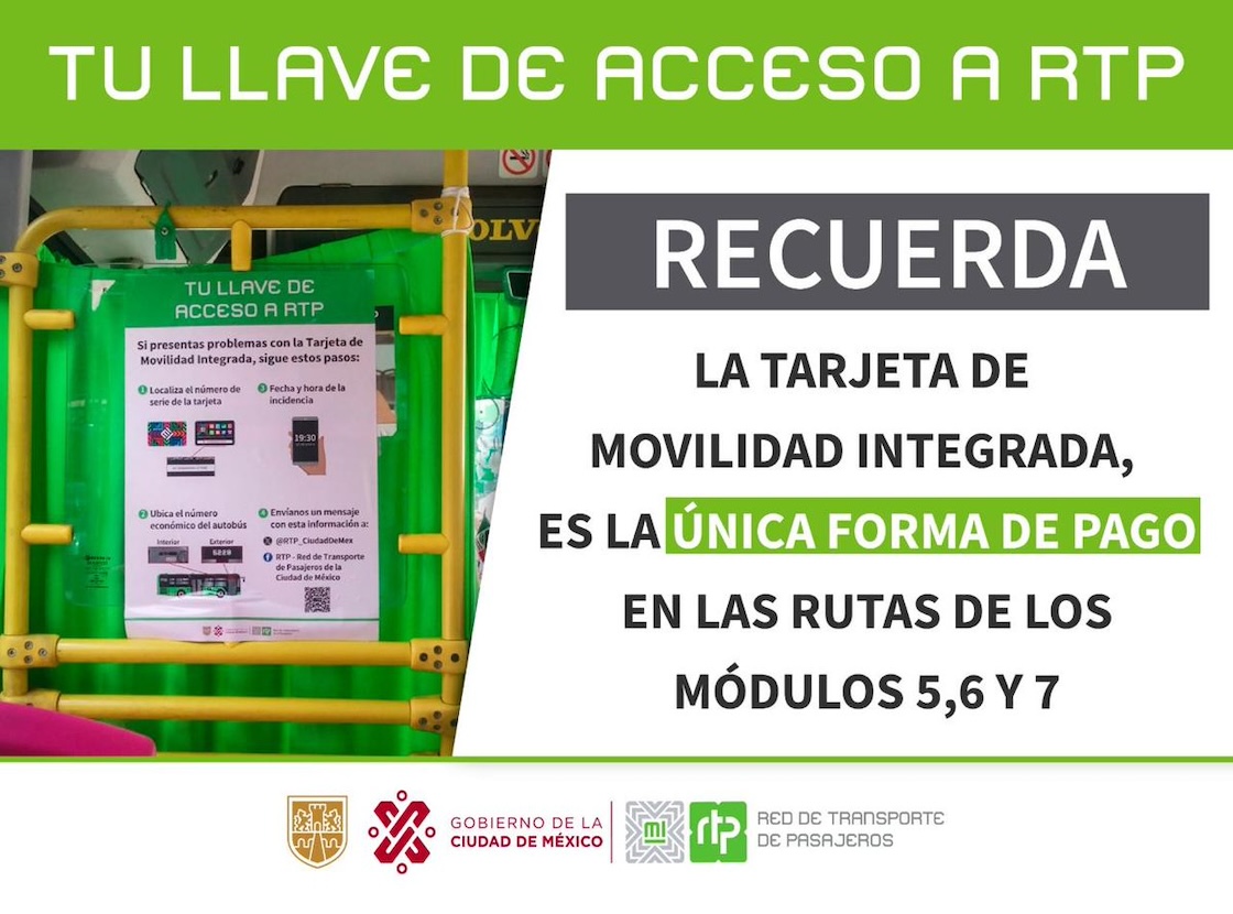 A inicios de agosto de 2024 la cuenta de RTP CDMX en Twitter (X) nos recordó que ya tenemos que usar la Tarjeta de Movilidad Integrada (MI) en los camiones de los módulos de las rutas 5, 6 y 7.