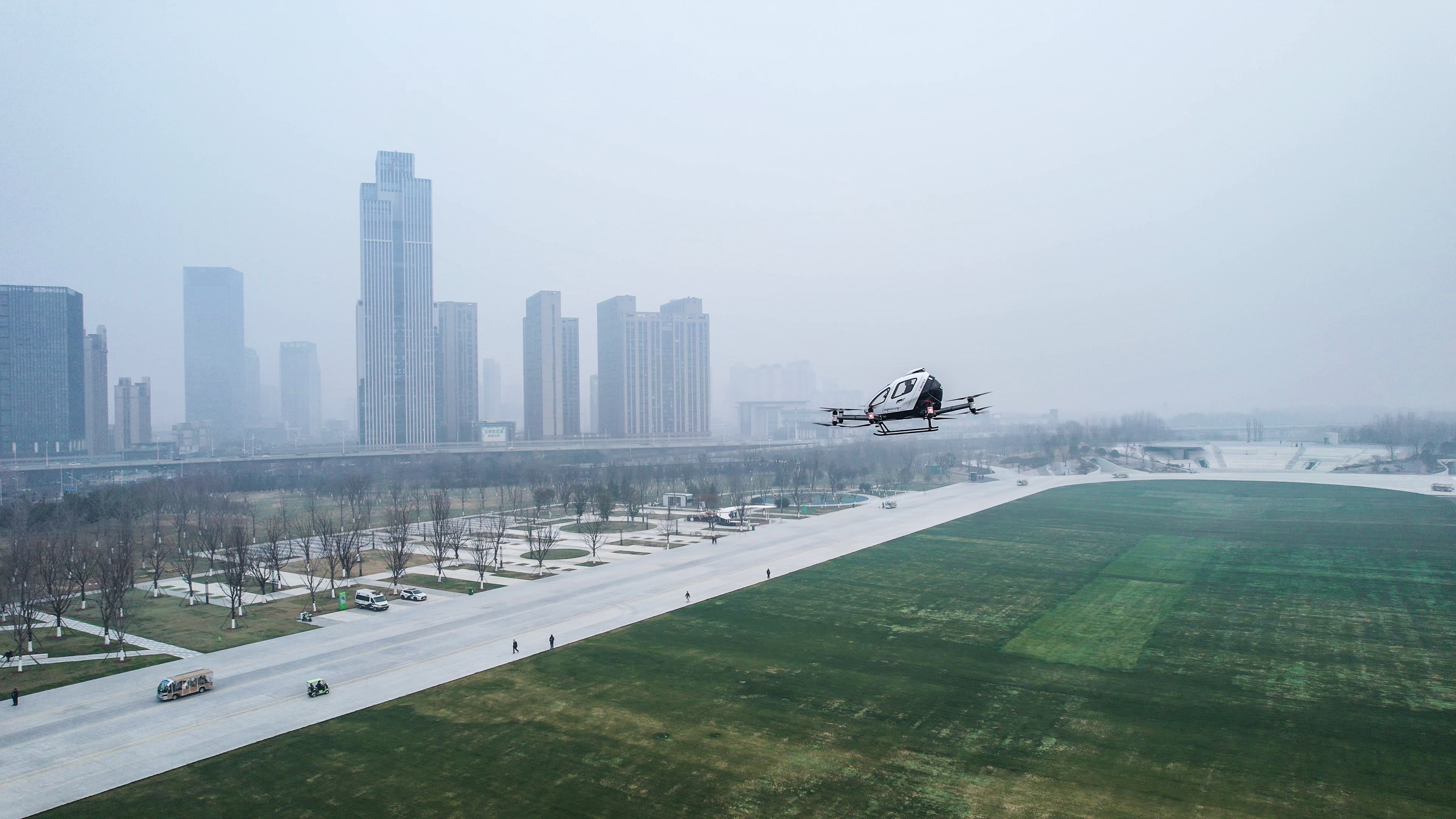 “Varios funcionarios gubernamentales y ciudadanos se unieron al primer grupo de pasajeros invitados a viajar en el EH216-S y experimentaron el magnífico paisaje desde una perspectiva completamente nueva sobre los lugares emblemáticos de la ciudad”, presume Ehang en un comunicado.