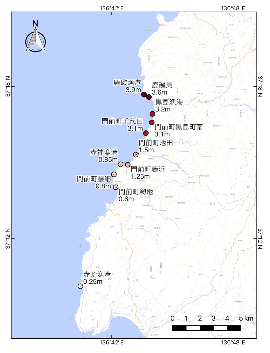Y ya para acabar, indicaron que notaron posibles rastros de tsunami en tierra justo en el puerto de Akasaki, donde se estima que el fenómeno alcanzó una altura de 4.2 metros y que el levantamiento cosísmico fue de 0.25 metros. Además, consiguieron evidencia de levantamiento costero a lo largo de la costa norte de la península de Noto.