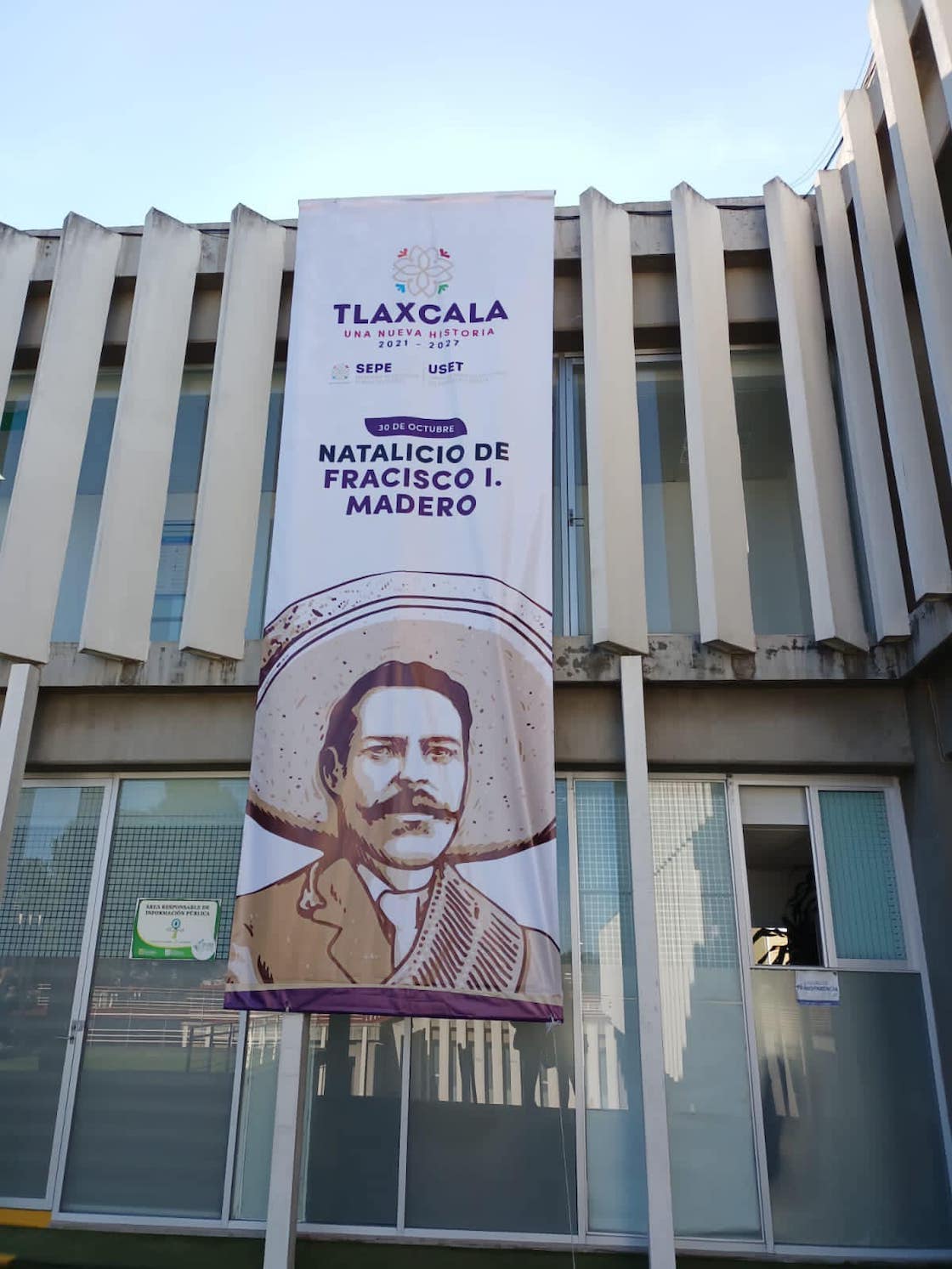 Y no; no fue el único error que cometió la dependencia de educación de Tlaxcala, pues si se fijan bien en la lona en la que imprimieron el “homenaje” a Madero y la imagen de Pancho Villa, se pueden dar cuenta de que hay algo más que no está del todo bien… ¡¿Qué es eso?!