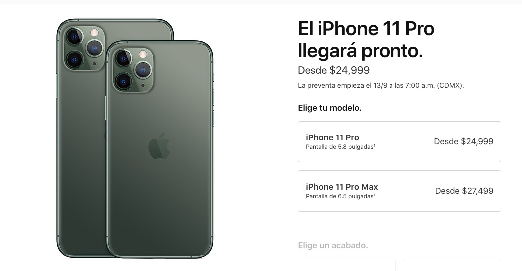 El iPhone 11 Pro y iPhone 11 Pro Max estarán disponibles en modelos de 64GB, 256GB y 512GB, y su precio será a partir de $24,999.