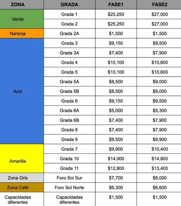 Para esta ocasión habrá un formato de venta similar a los festivales musicales, es decir, habrá fases, de modo que en la primera fase los boletos tendrán un costo menor respecto a la segunda fase.