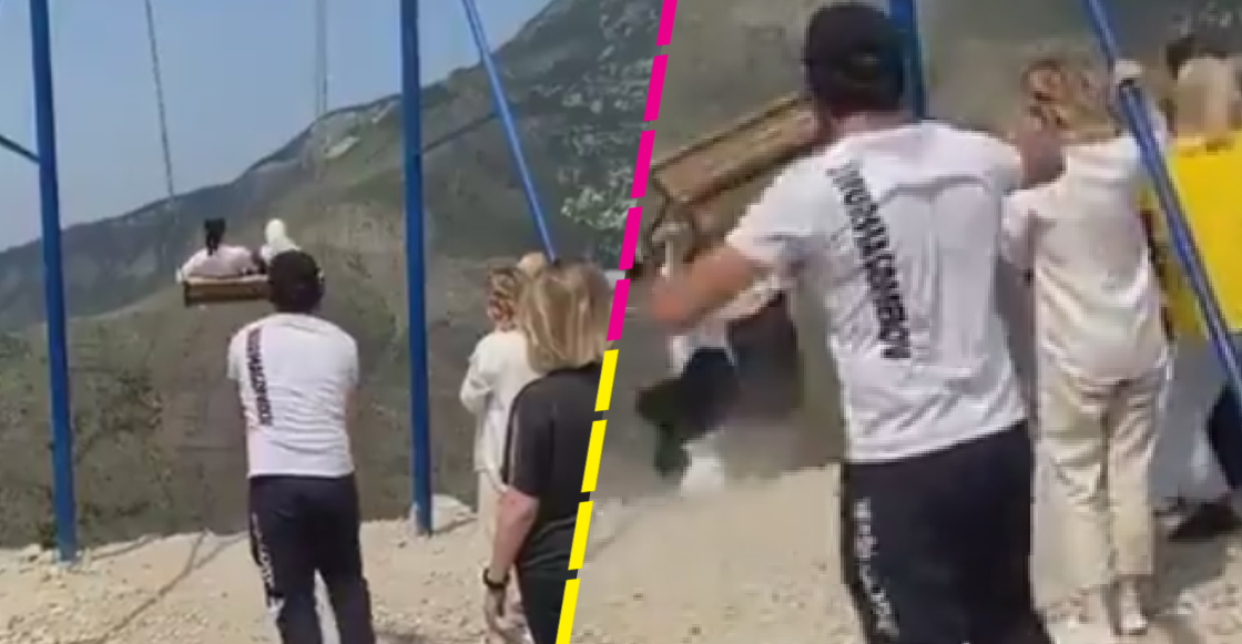 ¡OLV! Captan el momento en que dos mujeres caen de un columpio justo en la orilla de un barranco