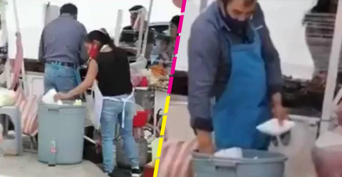 ¡Guácala! Graban cómo vendedores sacan platos de la basura para reutilizarlos