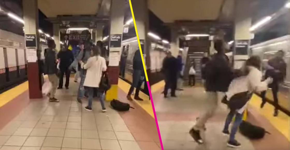 Mundo enfermo y triste: Hombre empuja a una mujer contra vagón del metro