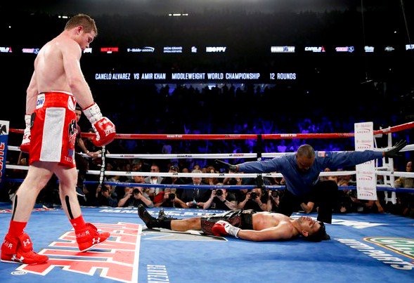 VIDEO: Canelo Alvarez derrota a Khan con el KO del año