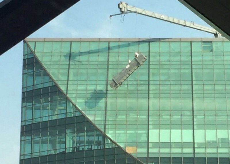 Mientras trabajaban, tres limpia vidrios de la Torre Mayor quedaron colgando sobre un andamio en la mañana de este viernes. Los trabajadores se encontraban suspendidos a…
