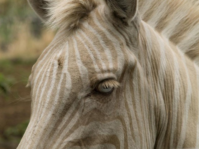 Zoe es una cebra que tiene rayas doradas y ojos azules, que ha sido diagnosticada con amelanosis y fue rechazada por su madre al nacer, debido…