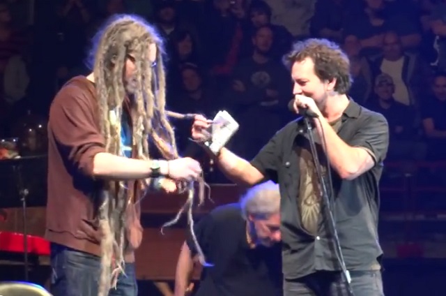 Video: Fan de Parl Jam deja que Eddie Vedder le corte sus rastas durante concierto