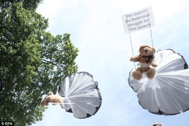 Se retira el embajador bielorruso en Suecia ante protestas de ositos de peluche paracaidistas