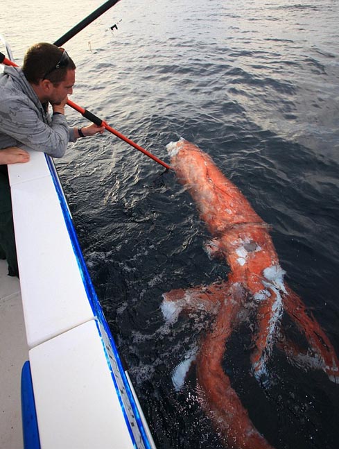 VIDEO: Encuentra un calamar gigante, ¡y se lo arrebata un tiburón!