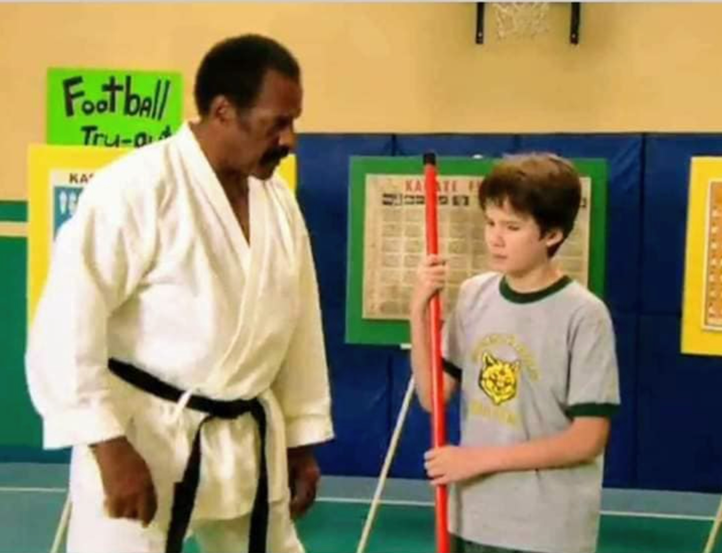 Aunque al final Ned aprende que lo importante es no competir con amigos de manera innecesaria, lo que recordamos de ese episodio es como a Ned lo ponen a entrenar trapeando los pisos del gimnasio. Algo así como lo que el Sr. Miyagi le enseña a Daniel con el “encerar y pulir”.