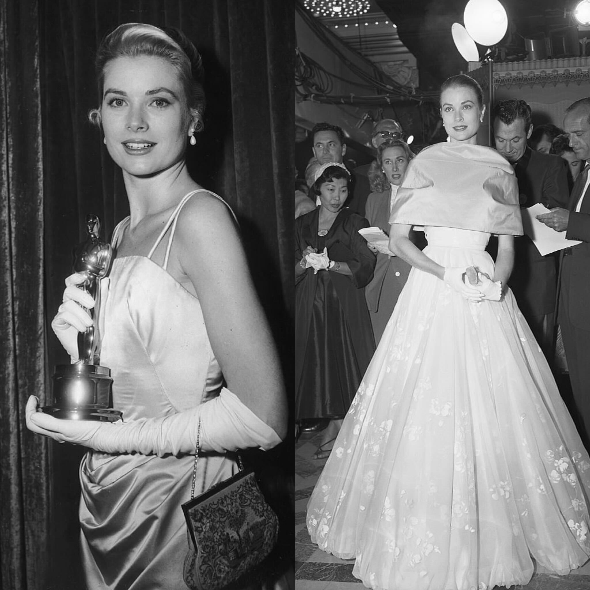 En un listado de los vestidos más míticos en la historia de los premios Oscar, tiene que estar Grace Kelly. Y la actriz era tan bella y elegante, que no mencionaremos un solo vestido, sino dos. El primero fue en la ceremonia de la Academia de 1955 cuando Grace Kelly ganó un Oscar como Mejor Actriz por The Country Girl.