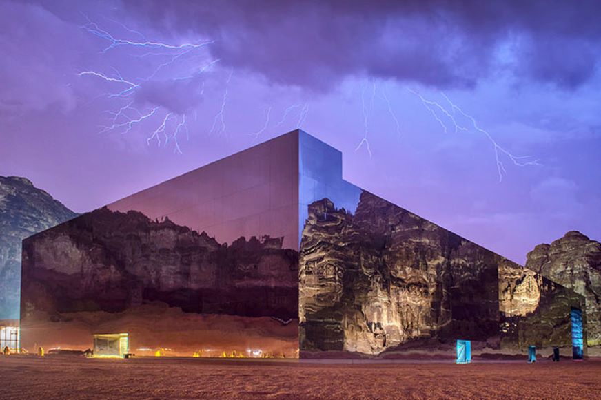 La sala de conciertos ‘Maraya Concert Hall’ es un verdadero espejismo circundante en medio del desierto de Al-Ula, en Arabia Saudita. Diseñado por los estudio de arquitectura ‘Gió Forma’ así como ‘Guardian Glass’ y construido en el 2018 por la ‘Comisión Real para AlUla’, oficialmente, se ha convertido en el edificio de espejos más grande del mundo, la pirámide reflejante consiguió su inscripción en los Récords Guinness, gracias a sus 9.740 metros cuadrados.