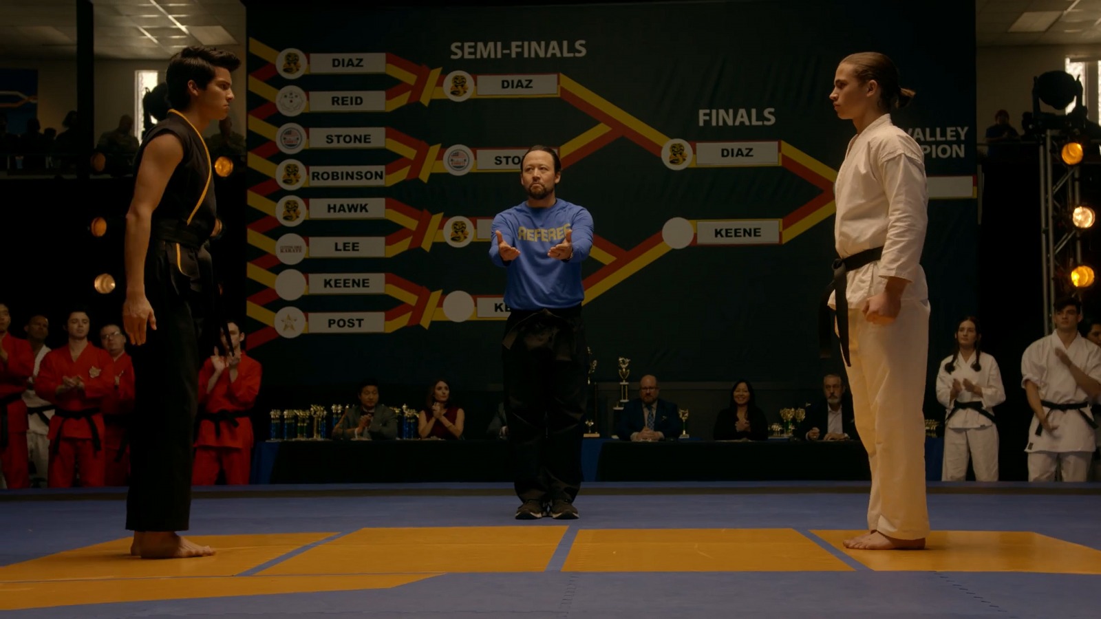 Este último, quien previamente había sido rechazado por Daniel por no contarle sobre su padre, se inscribe al torneo como luchador independiente y luego de varios combates se enfrenta a Hawk, quien lo ataca por la espalda dejándole el hombro severamente dañado y queda descalificado. Así, la pelea final es entre Miguel y Robby, siendo el estudiante de Cobra Kai el vencedor al golpear repetidas ocasiones en el hombro lastimado a su oponente. Sí, fue la pelea que todos esperábamos con emoción durante toda la temporada.