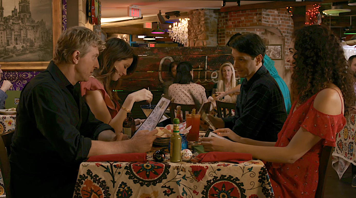 Mientras esa fiesta se termina con la llegada de la policía, Daniel (acompañado de su esposa Amanda) y Johnny (junto con la mamá de Miguel) se encuentran en un restaurante. Deciden comer juntos y llega un momento en que ambos platican sobre qué deben hacer antes de que Kreese termine por corromper la práctica del karate en Cobra Kai.