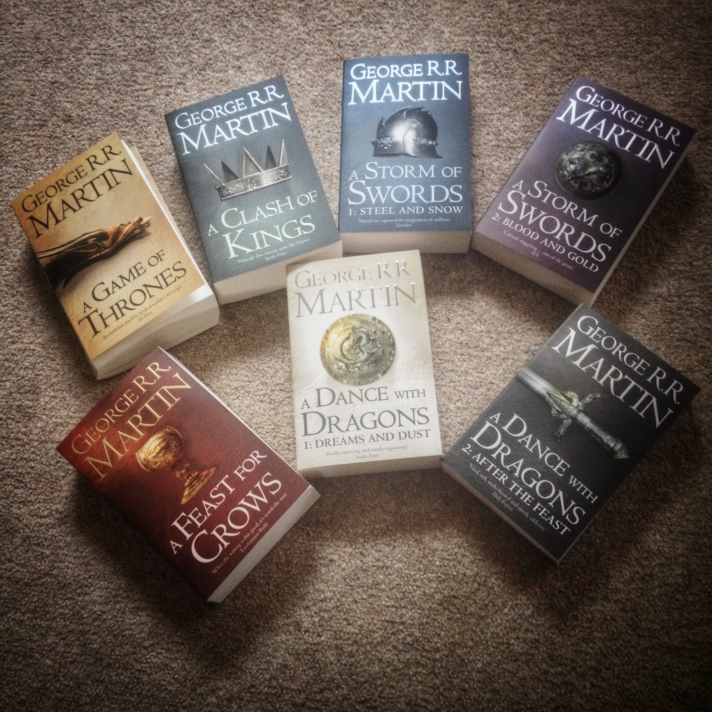 Las novelas de George R.R. Martin que conforman Canción de Hielo y Fuego son:
