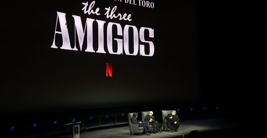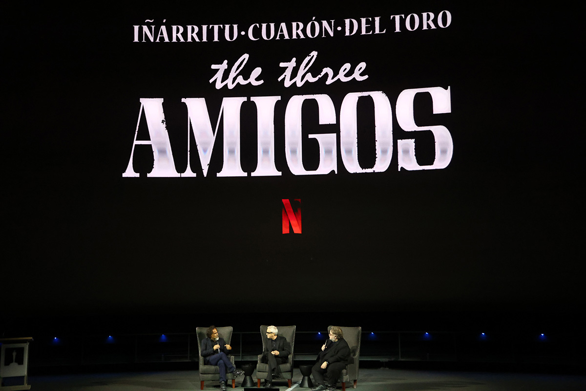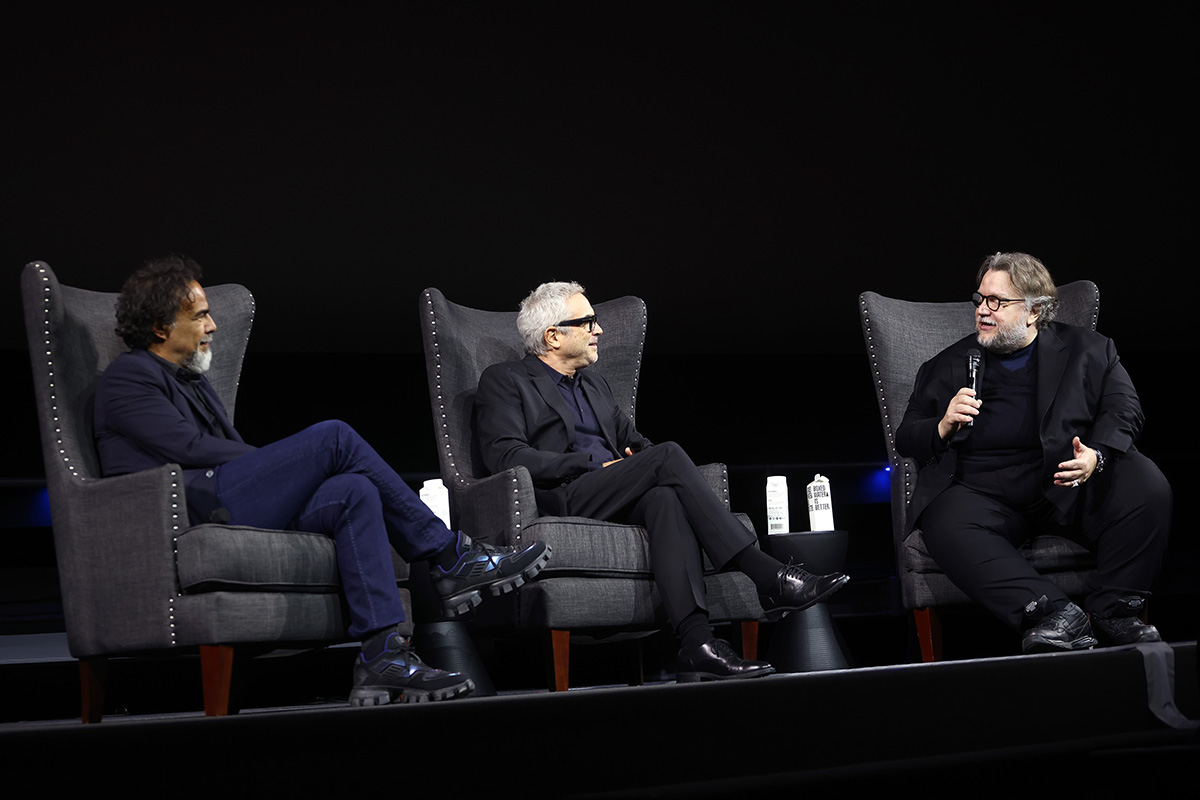 En la noche del viernes 6 de enero, se dieron cita varios invitados y medios para escuchar a tres de los directores más destacados e influyentes de los últimos años. Bajo la organización de Netflix (la plataforma que ha respaldado sus proyectos más recientes arrancando con ROMA en 2018), Ted Sarandos fue el encargado de presentarlos con un aforo lleno para el que Alfonso Cuarón sirvió como moderador para que Iñárritu y Del Toro hablaran a fondo de BARDO y Pinocchio.