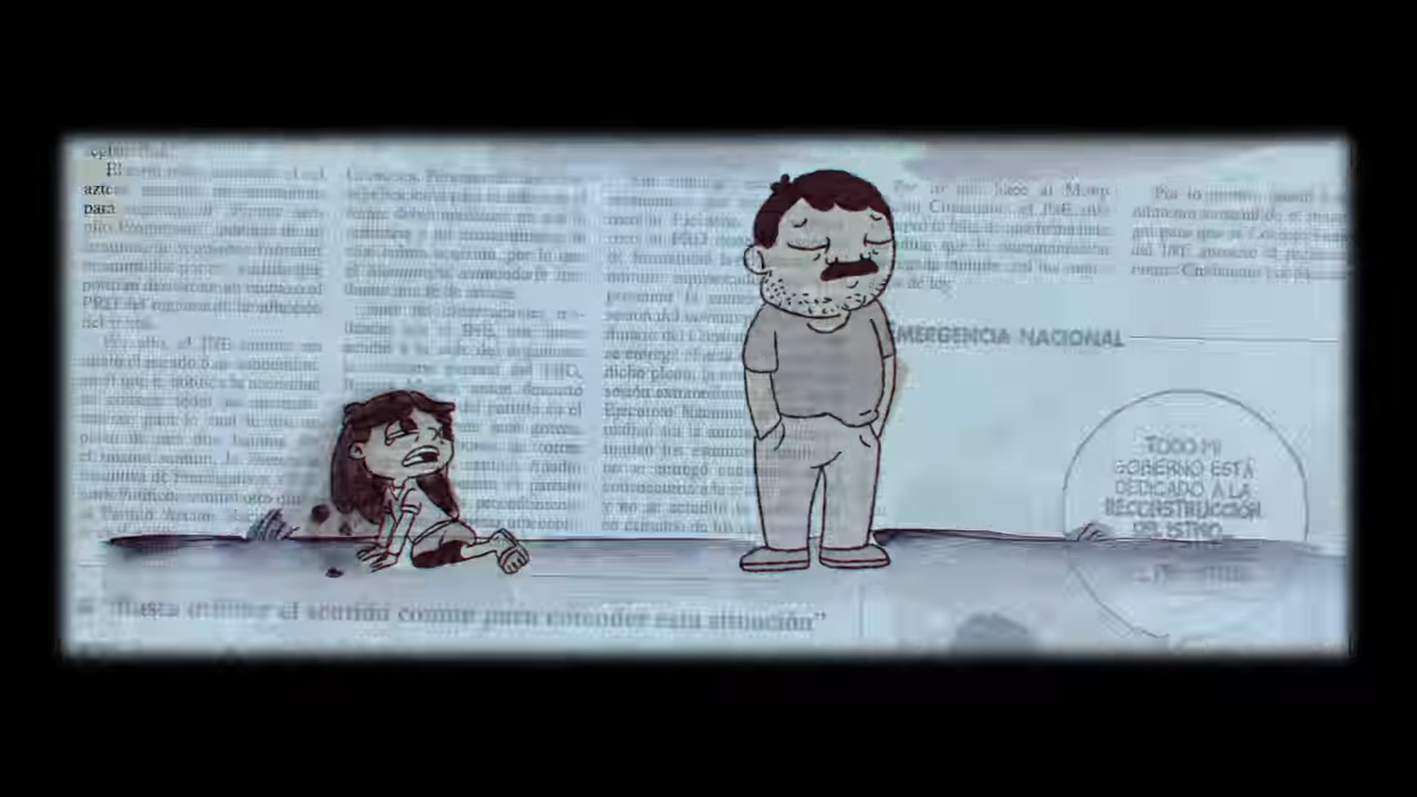 Si algo distingue al estupendo trabajo de Nuria y Carlos, es la técnica de realización que utilizaron para Dalia Sigue Aquí. Los cineastas se rifaron este cortometraje a través de un proceso en el que utilizaron más de 5 mil recortes de periódico, mismos a lo que posteriormente ‘les dieron vida’ utilizando animación 2D y rotoscopia analógica.