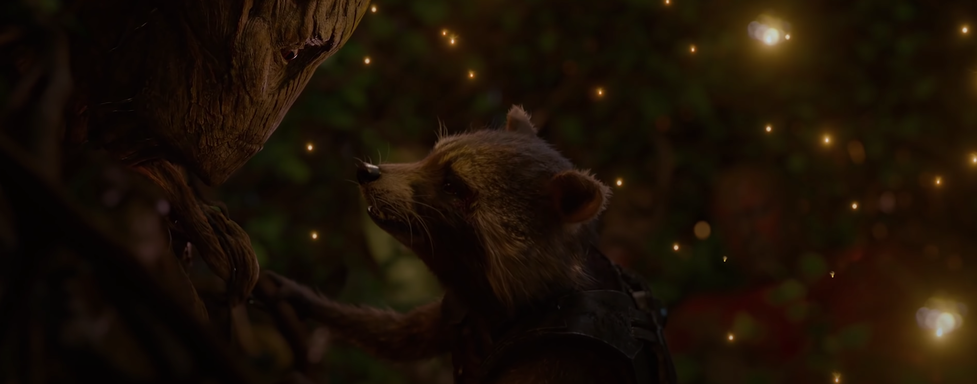 Groot sacrifica su vida para salvarlos a todos, y eso los motiva para que ellos mismos hagan un sacrificio por los demás. Sí, es esa bella escena en la que Groot comienza a sacar ramas de su cuerpo para cubrir al resto, y cuando Rocket le dice que va a morir, contesta “We are Groot“ (no estamos llorando, ustedes están llorando).