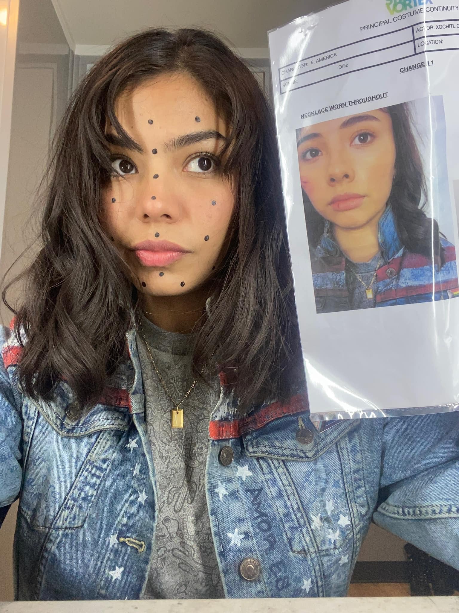 “Ahí estaba yo, ensayando líneas juntas y ayudando con su línea de ojos. ¡Fue una LOCURA! ¡Me siento tan afortunada de haber tenido la oportunidad de trabajar en este proyecto durante varios meses durante los encierros y la pandemia!”