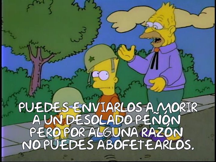 La guerra nunca trae nada bueno… excepto por un grandioso episodio de Los Simpson. De la primera temporada, después de su paso por el Show de Tracey Ullman, este episodio fue el gran debut de Nelson Rufino y de sus prácticas abusivas sobre Bart… y todos los niños para el caso.