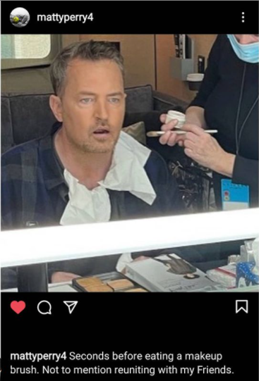 Oh sí, Matthew Perry escribió que estaba a punto de “comerse” una brocha de maquillaje y agregó: “Not to mention reuniting with my Friends” (Sin mencionar el reencuentro con mis “Amigos”). Y lo que ningún fan de la icónica sitcom dejó pasar, fue que escribió “Friends” con mayúscula al principio, lo que claramente no es error de ortografía, sino una alusión a la serie.