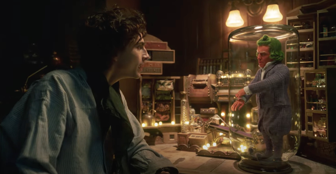 En el avance recién compartido, podemos ver a Willy (Timothée Chalamet) atrapando a un misterioso impostor que se mete a su casa. Y este, resulta ser nada más y nada menos que el Oompa Loompa protagonizado por Hugh Grant, quien le revela la existencia de Oompa Lompalandia.