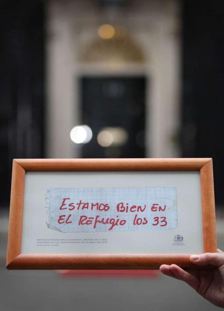 Fueron las familias de los mineros quienes insistieron y protestaron al gobierno chileno que siguiera con la búsqueda de los 33 hombres. 17 días después el primer rayo de luz llegó en forma de un mensaje escrito con tinta roja, el cual los mineros enviaron a través de una de las sondas con las que los rescatistas los buscaban.