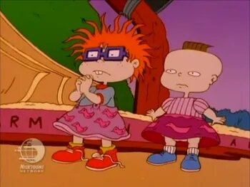 No sabemos si esto fue planeado o simplemente fue una coincidencia que se dio con las circunstancia del guión, pero Rugrats hablaron de alguna manera sobre el acoso sexual y la transfobia. Retomando aquel capítulo donde los niños de la pandilla se cuestionan por qué no pueden usar faldas, Carlitos y Fili se ponen vestidos y se encuentran a dos niños que se pelean “por ellos” pensando que son niñas bonitas.