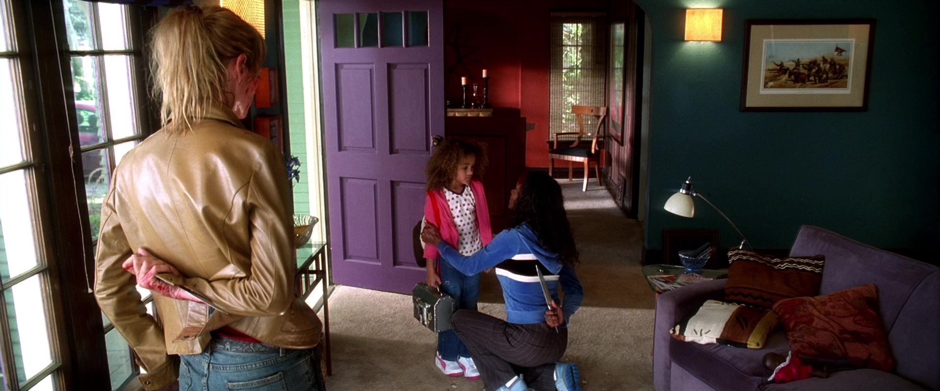 La primera escena de Kill Bill (el primer capítulo) es maravillosa, pues supone el enfrentamiento entre The Bride y Vernita Green. Como sabemos, Beatrix Kiddo sale ganando después de clavar un cuchillo en el pecho de Vernita cuando esta le dispara cubriendo la pistola con una caja de cereal.