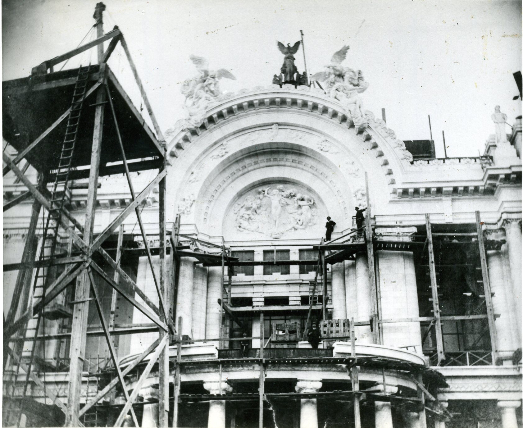¿Se imaginan pasar por el (ahora) Eje Central Lázaro Cárdenas y ver un enorme esqueleto metálico recubierto de mármol? Esa era la vista de los mexicanos en 1905, cuando la obra iba tomando forma. Durante siete años (hasta 1912), se realizaron los detalles artísticos por parte de Gianetti Fiorenzo, artista italiano que colocó las impresionantes esculturas en la fachada del Palacio.