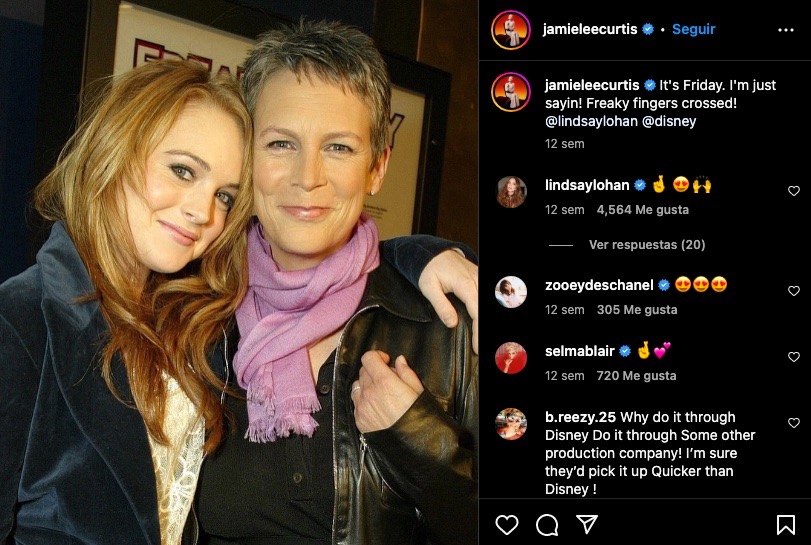 El anuncio de la secuela de Freaky Friday no solo lo confirma el medio antes mencionado. La propia Jamie Lee Curtis y Lindsay Lohan han compartido en sus historias de Instagram las portadas de los medios que han revelado la noticia, dando a entender que sí se va a armar todo este rollo.