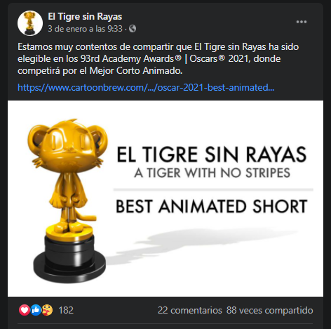 Y por si eso fuera poco, el corto ha formado parte de 120 selecciones oficiales en otros tantos festivales alrededor del mundo. Con todo eso en su espalda, el joven director mexicano ya contendió por un premio Ariel en nuestro país y recientemente recibió la noticia de que El Tigre Sin Rayas será considerado como material elegible para competir en la entrega 93 de los Oscar por la estatuilla a Mejor Corto Animado. Le deseamos a Robin mucho éxito en esta próxima entrega.