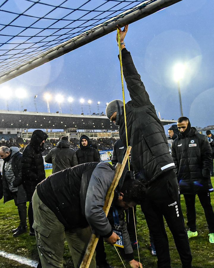 Como se puede ver en las imágenes, los encargados del encuentro midieron las porterías e intentaron nivelarlas; no obstante, estos esfuerzos no sirvieron de mucho y el AEK Atenas dio pocos detalles sobre lo sucedido.