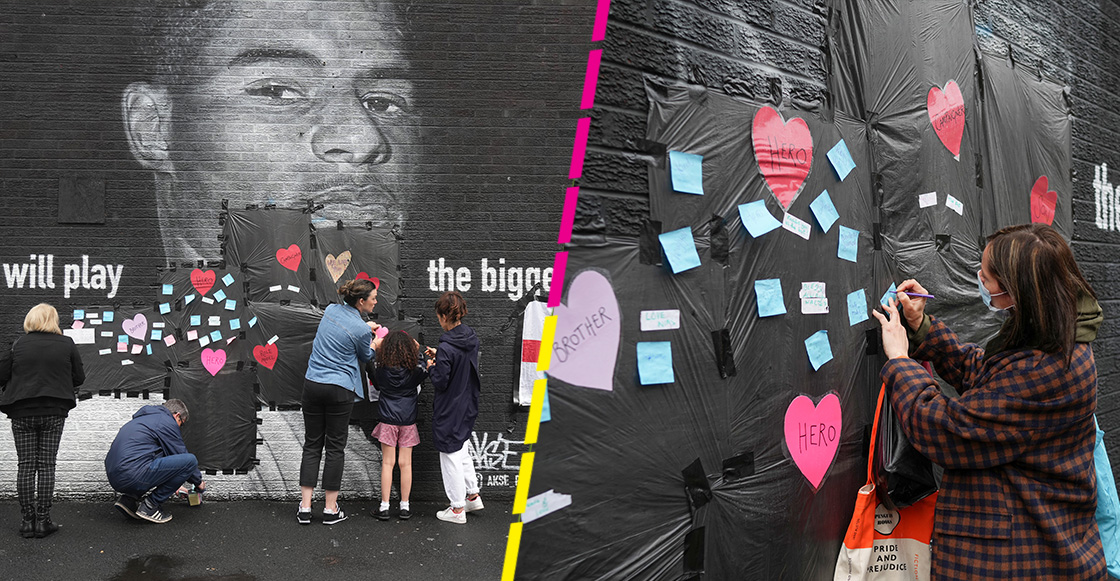 El gobierno de Inglaterra se sumó a todo por lo que había estado luchando Marcus Rashford y lanzó un paquete de inverno para apoyar a los niños más vulnerables durante el invierno y hasta la pascua. Debido a todas estas acciones, la gente se organizó para crear el mural en honor al delantero y su loable labor fuera de la cancha.
