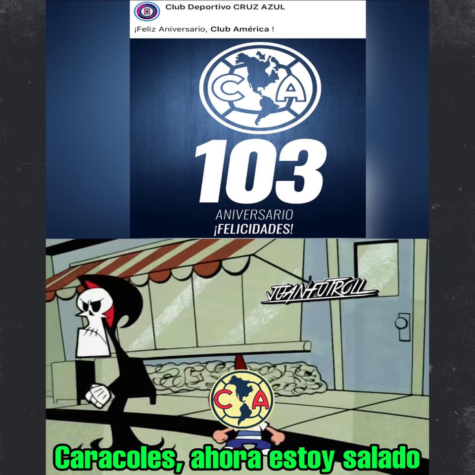 El América cumple 103 años y tal vez no sea el mejor momento para hacer fiesta, pues el recuerdo del repasón de Cruz azul 5-2 en el Clásico Joven aún está fresco y para colmo Sevilla canceló su gira por Estados Unidos, donde enfrentaría al Ame justamente para celebrar su aniversario.