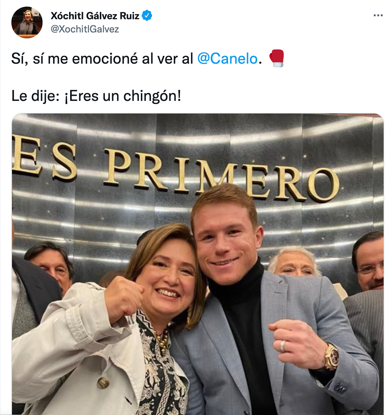 Y ahí andaba Miguel Ángel Mancera, Olga Sánchez Cordero, Miguel Torruco, Xochitl Gálvez, quienes sacaron al fan que llevan dentro y sin pena se acercaron al presídium con ‘Canelo’ para buscar la selfie.