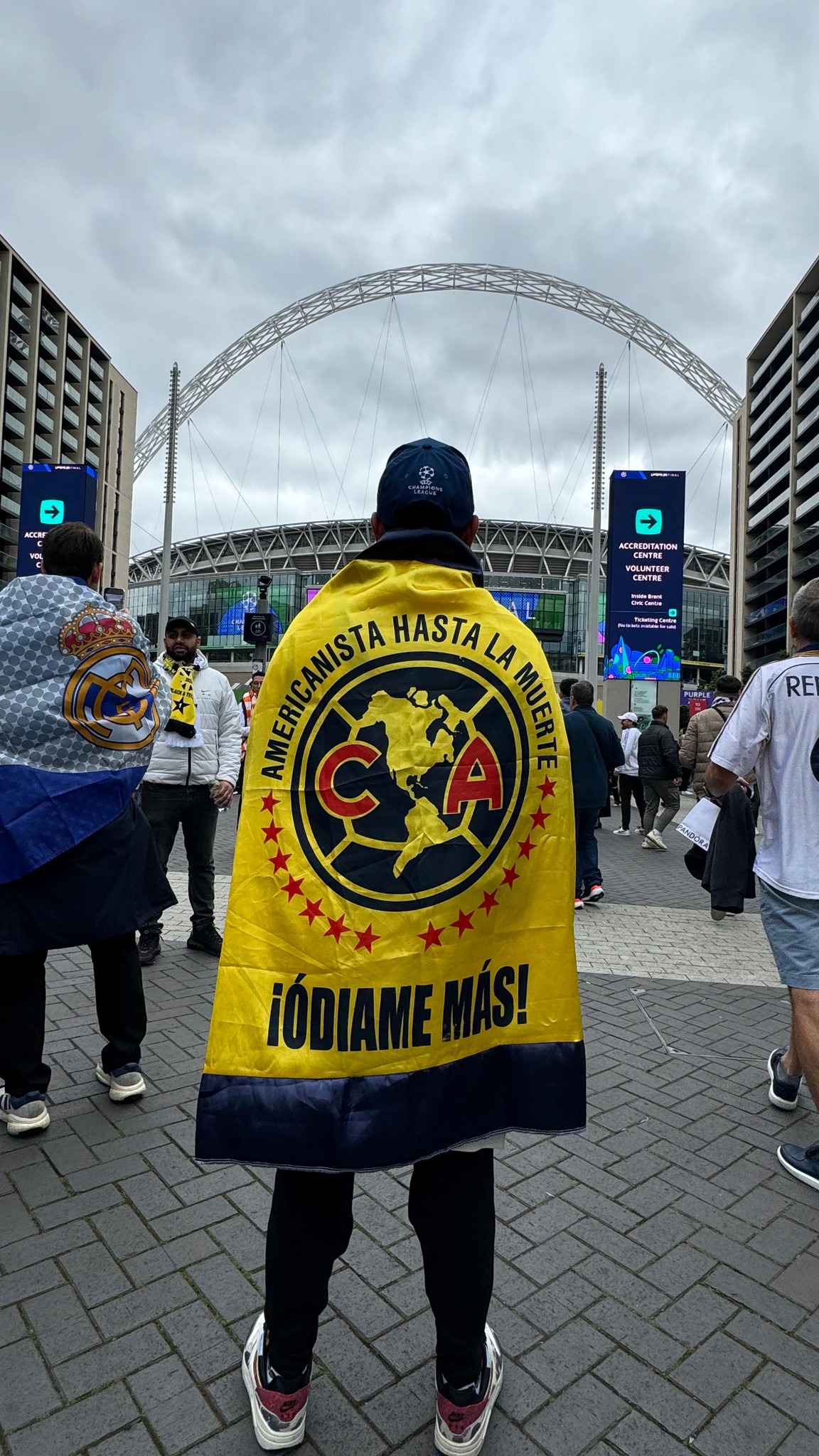 Antes de ingresar al estadio de Wembley nos encontramos a un seguidor que destacaba entre todos los demás aficionados amarillos del Borussia Dortmund, y es que en realidad no era aficionado del Dortmund, sino de las poderosas Águilas del América.