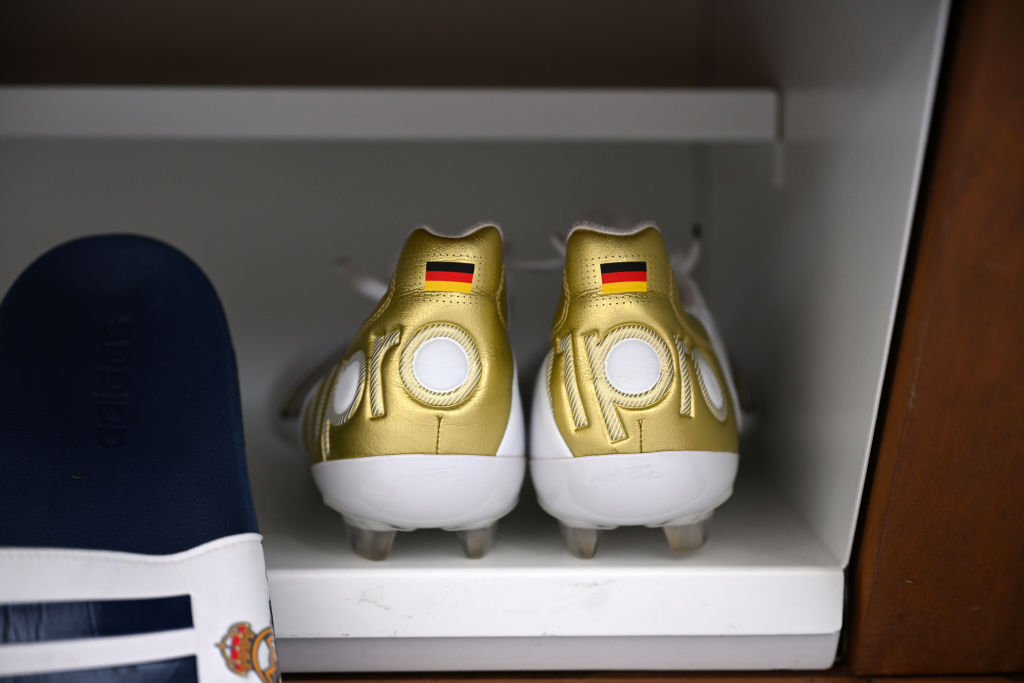 Kross se despidió del Real Madrid en la final de la Champions League y no lució sus incaicos zapatos. Para este partido y el último que jugó en el Santiago Bernabéu, el alemán recibió un par de zapatos especiales, que en lugar de tener vivos en azul, ahora lucieron el dorado.