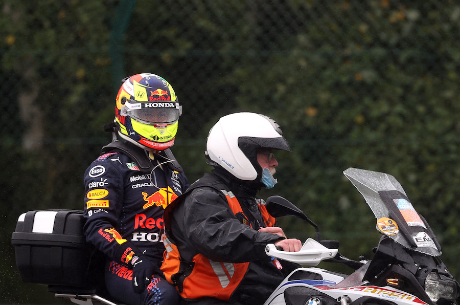 El mexicano Checo Pérez se había quedado fuera del Gran Premio de Bélgica sin poder iniciar la carrera debido a un accidente minutos antes de iniciar la competencia. El piloto de Red Bull perdió el control de su monoplaza y se estrelló con las barreras de contención.