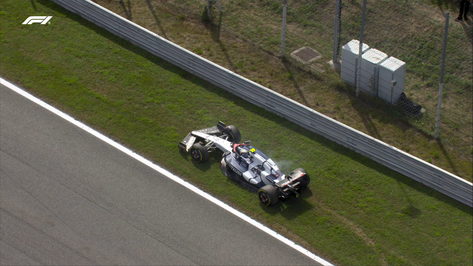 Todavía no comenzaba la carrera cuando tuvimos el primer abandono, el cual fue de Yuki Tsunoda, quien durante la vuelta de reconocimiento quedó fuera de la pista, con humo en la zona de la unidad de potencia.