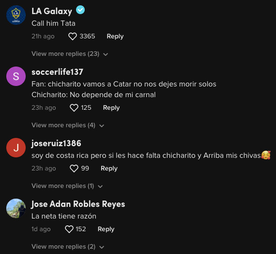 Los aficionados mexicanos piden constantemente el regreso de ‘Chicharito’ a la Selección Mexicana y el Galaxy no se queda atrás. El equipo actual del delantero comentó el video en TikTok en el que se escucha esta petición y su respuesta, pero no fue el único.