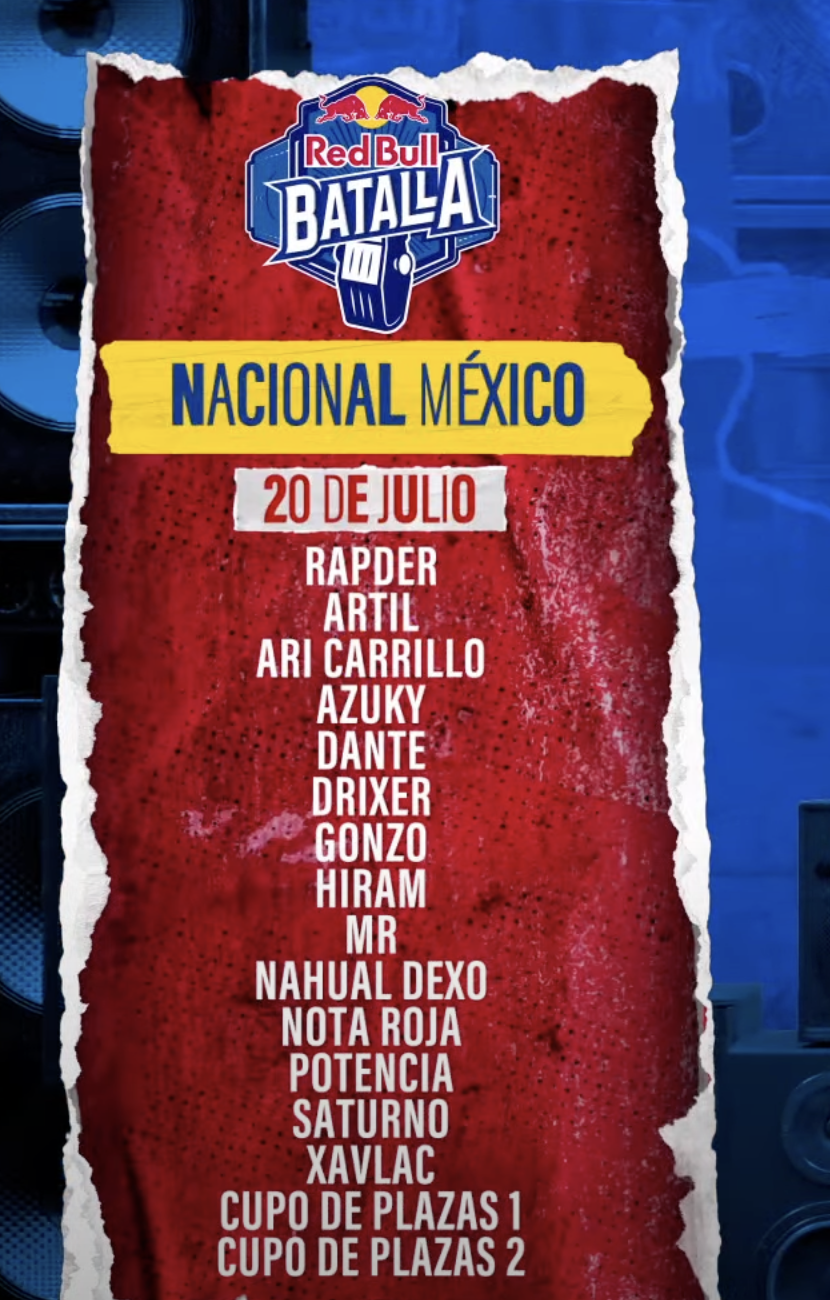 Ya sabemos que toda la temporada de freestyle para Red Bull Batalla terminará el 30 de noviembre en España y comenzó en Colombia el 6 de julio. La Final Nacional en México será el 20 de julio.