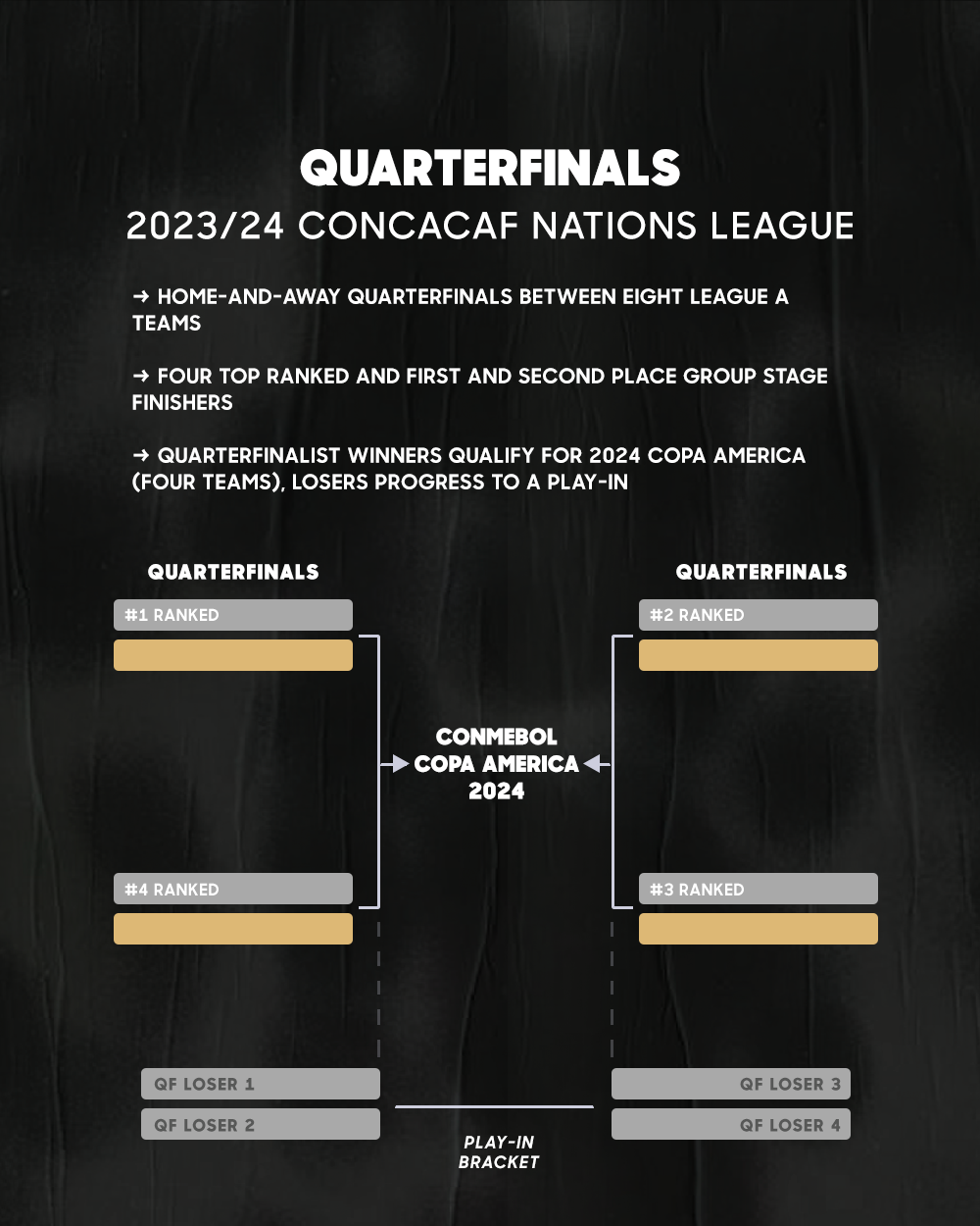 - Los cuatro ganadores de esos cuartos de final (a jugarse a ida y vuelta en noviembre de 2023) clasificarán a la Copa América 2024.