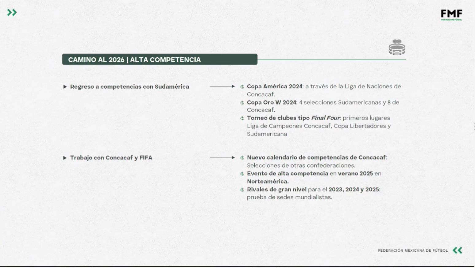 En conferencia de prensa, Yon de Luisa confirmó que México regresará a la Copa América en 2024, con el objetivo de jugar en los torneos más competitivos a nivel mundial.