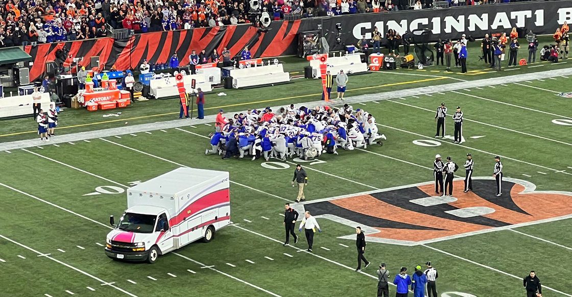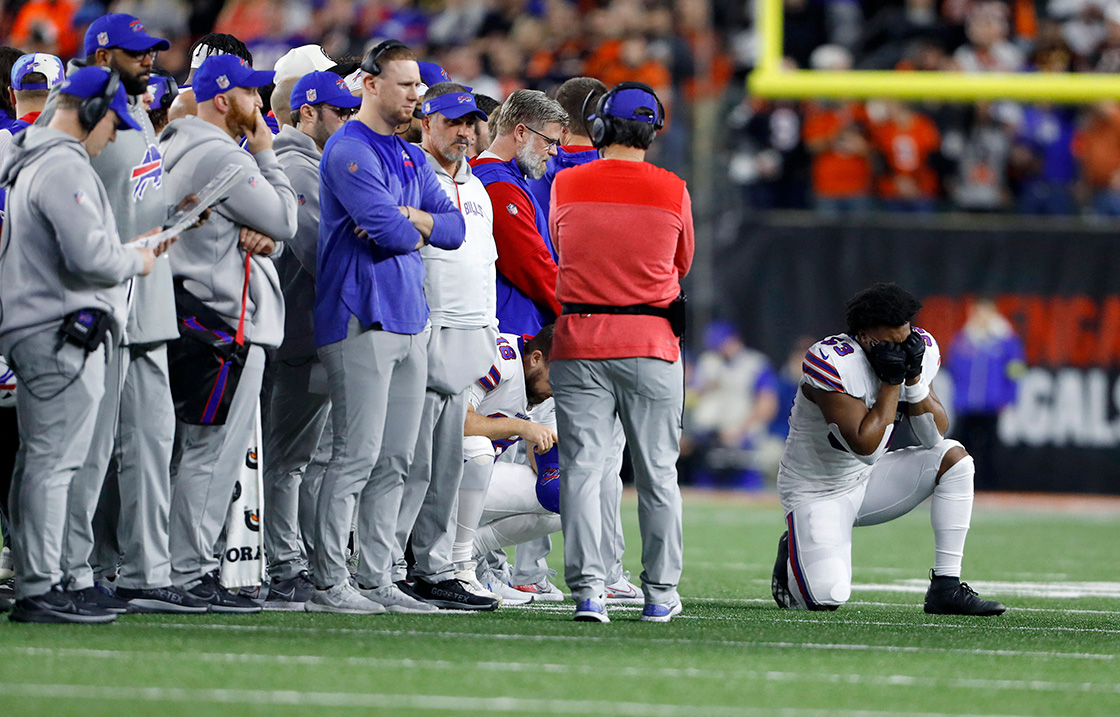 Unos minutos después, todos los jugadores y personal de los Bills se reunieron en el campo para rezar por su compañero; sin embargo, las reacciones de compañeros, rivales y de todo el estadio nos hacen dimensionar que se trata de una situación delicada.