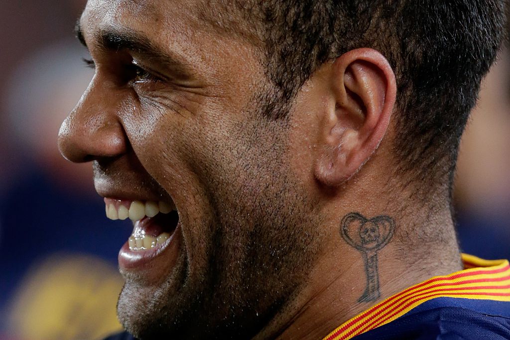 Peeeeeeero, Dani Alves no sólo llama la atención por su estilo de juego y habilidades dentro del campo, también por su look y lo extravagante del onfit que usa, eso incluye sus tatuajes y hay que decirlo, tiene casi tantos tatuajes como títulos en sus vitrinas… y tiene más de 40 campeonatos.